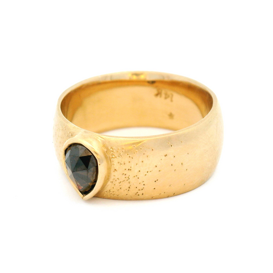 10k Yellow Contour Ring with 0.22cts Salt & Pepper Rose-Cut Diamonds