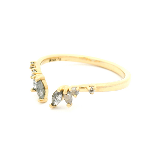14k Yellow Leaf Band with 0.125cts Salt & Pepper and Black Diamonds
