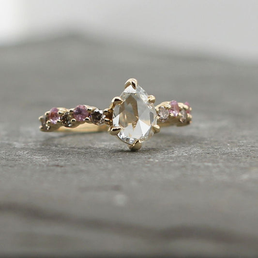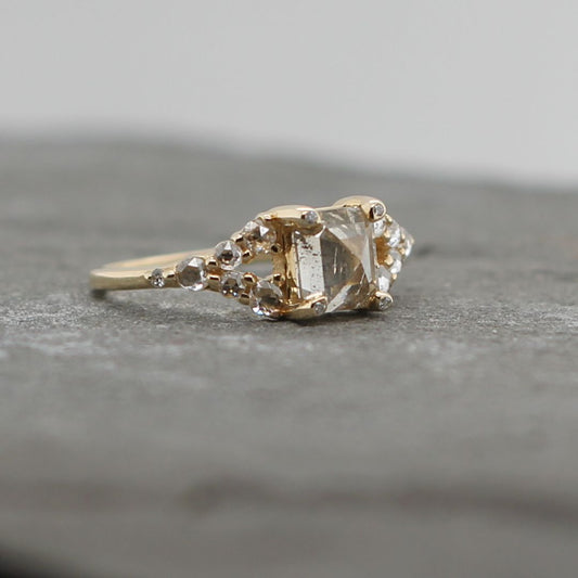 14k Yellow Engagement Ring with 0.52ct Rose-Cut Diamond and Accent Diamonds