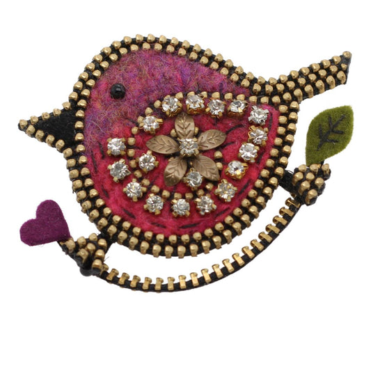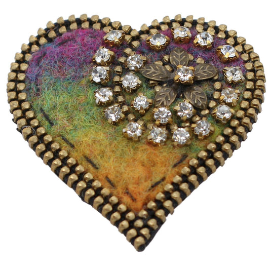 Sparkly Wool & Zipper Heart Brooch