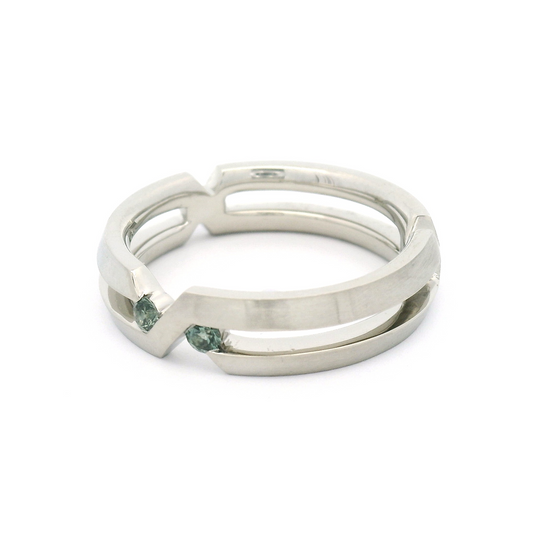 14k White 5.5mm Wide Moi et Toi Band with 0.14cts Montana Sapphires