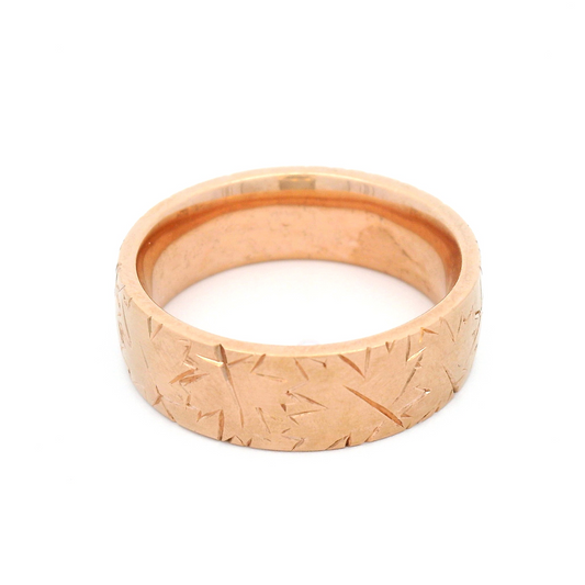 10k Rose Gold 7mm Wide Engraved Maple Leaf Band