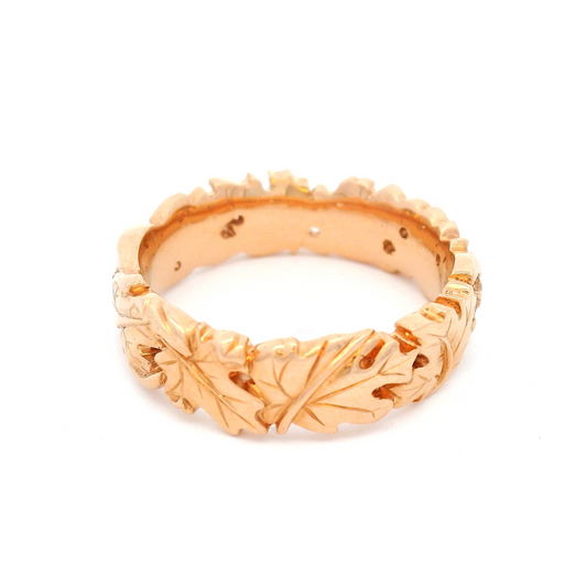 14k Rose Gold Carved Sugar Maple Band with Canadian Diamond Accents