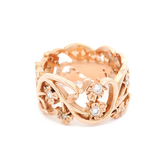 10k Rose Gold Maple Vine Band with 0.38cts Natural Diamonds