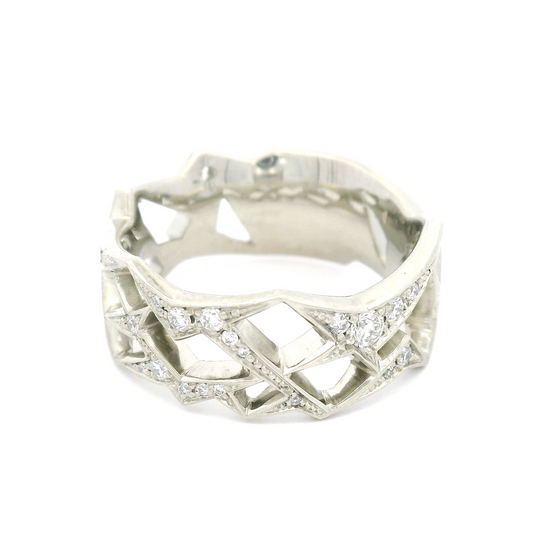 14k White Carved Frost Crystal Half-Eternity Band with 0.25cts Natural Diamonds