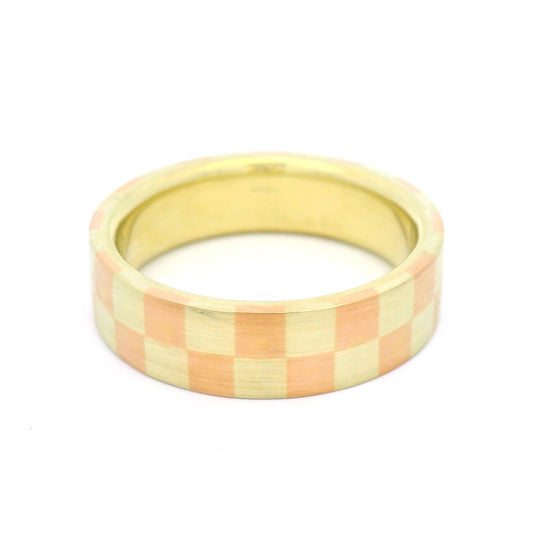 Diamond & Faceted Rose-Gold Carved Wedding Band