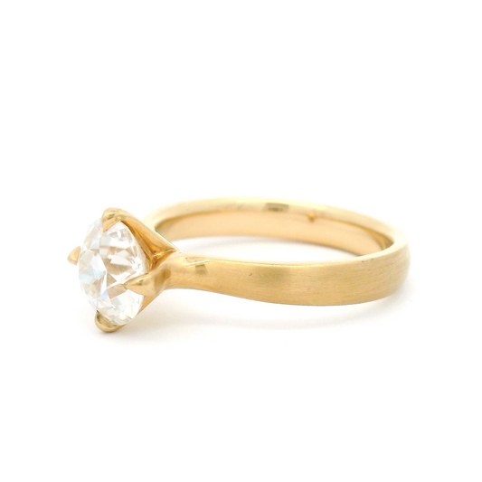 Compass Solitaire - 14k Yellow Solitaire with 7mm Old European Cut Moissanite