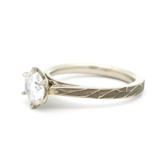 Icy Moissanite Frost Solitaire - 14k White Solitaire with 6mm Round Moissanite