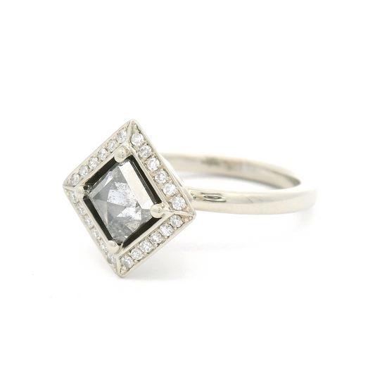 14k White Engagement Ring with 0.63ct Salt & Pepper Rose-Cut Diamond and Accent Diamonds