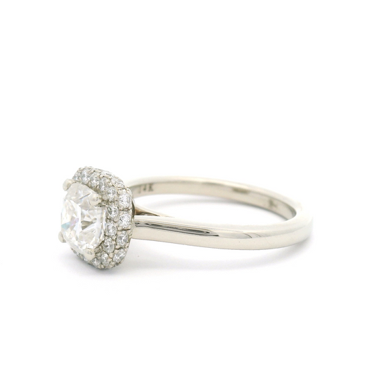 14k White Engagement Ring with 1.1ct Moissanite and Accent Double-Sided Diamond Halo