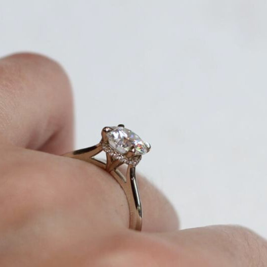 Sold, ask!Moissanite and Hidden Halo Engagement Ring