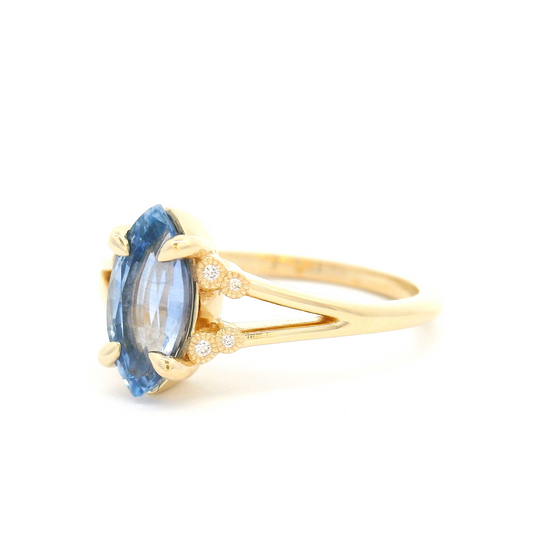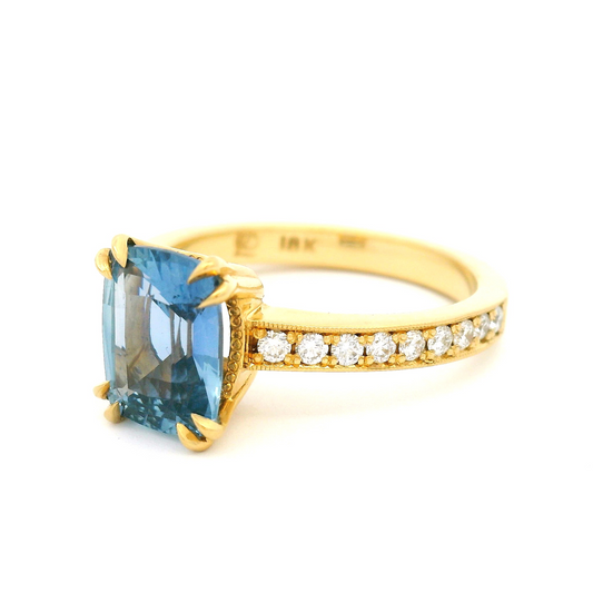 18k Yellow Engagement Ring with 2.56ct Cushion-Cut Blue Sapphire and Accent Diamonds