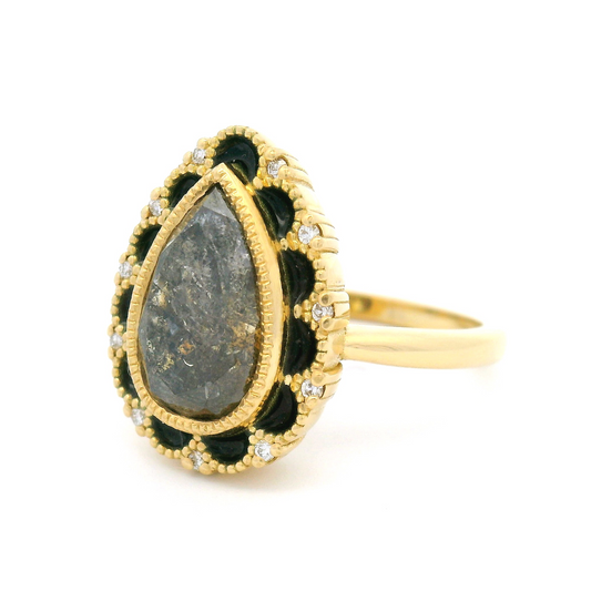 Rene - 14k Yellow Ring with 2.0ct Black Rose-Cut Diamond, Accent Canadian White Diamonds and Black Rose-Cut Pear Shape Diamonds