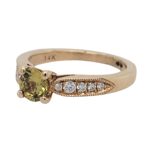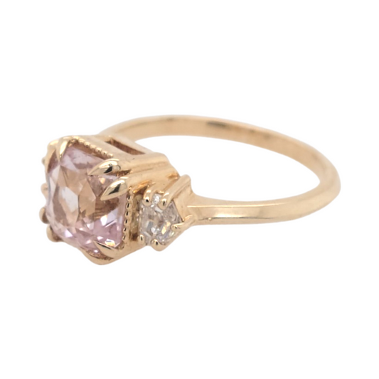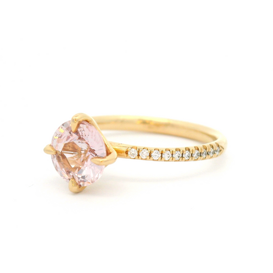 14k Yellow Engagement Ring with 1.58ct Peach Sapphire & Accent Diamonds