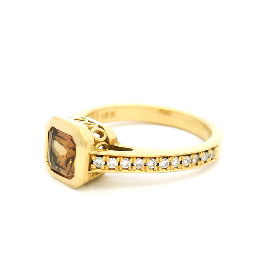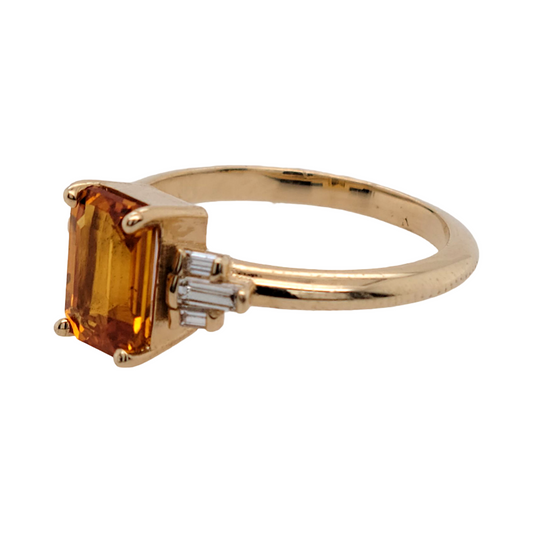 18k Yellow Bezel Set Ring with 0.86ct Orange Sapphire and Accent Diamonds