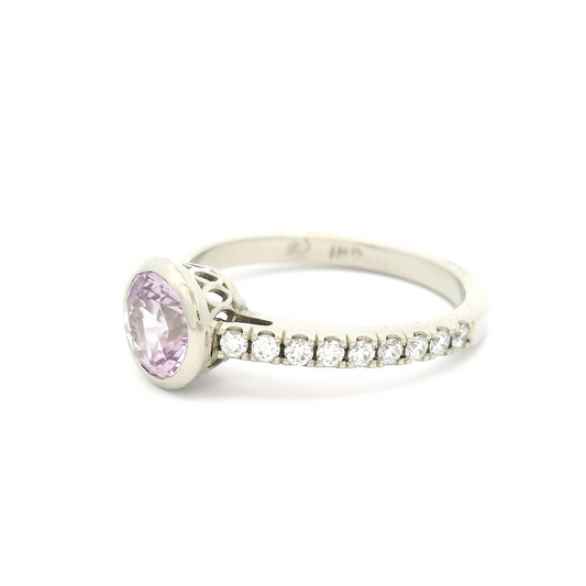 18k White Bezel Set Ring with 1.33ct Pink Sapphire and Accent Diamonds