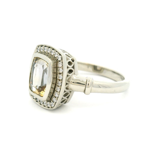 18k White Ring with 2.51ct Champagne Sapphire and Accent Diamonds