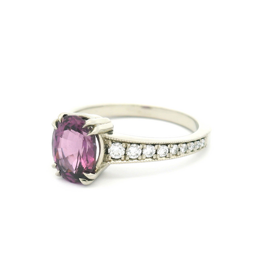 18k White Ring with 1.90ct Oval Pink Sapphire and Accent Diamonds