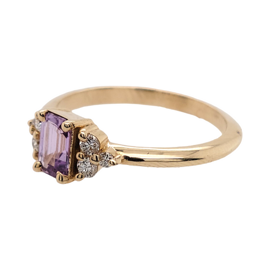 14k Yellow Art Deco Inspired with 0.45ct Rose-Cut Diamond, Accent Purple Sapphires and Diamonds