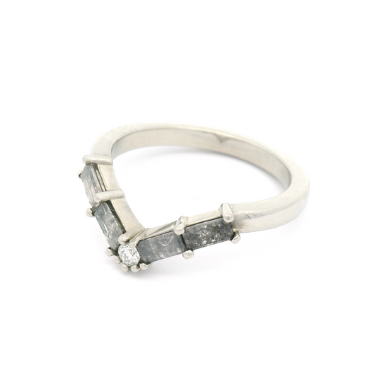 14k White Contour Band with 0.48cts Salt and Pepper Baguette Diamonds