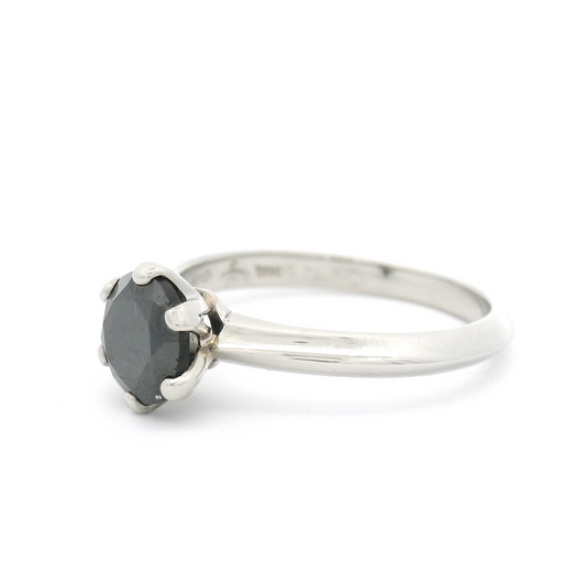 18k White Six-Claw Solitaire with 1.22ct Black Round Brilliant Cut Diamond