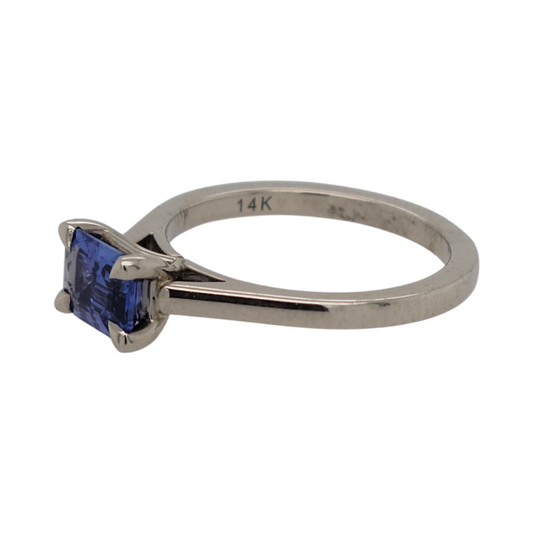 18k White Engagement Ring with 0.77ct Vibrant Blue Emerald Cut Sapphire and Accent Diamonds