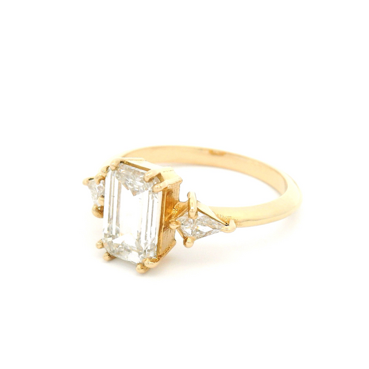 14k Yellow Lab Diamond Engagement Ring with 1.66ct Emerald Cut and Accent Kite Cut Diamonds