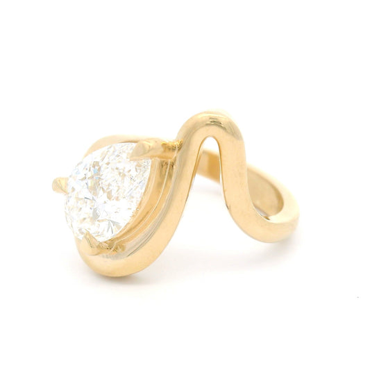 14k Yellow Wavy Solitaire with 2ct Lab-Grown Pear Shape Diamond