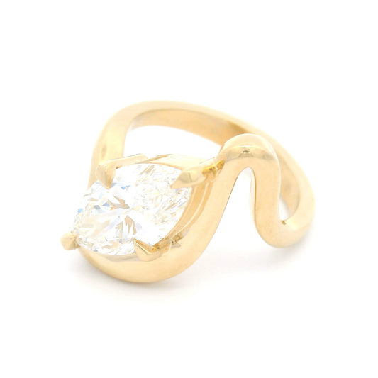 14k Yellow Wavy Solitaire with 2.1ct Lab-Grown Marquise Diamond