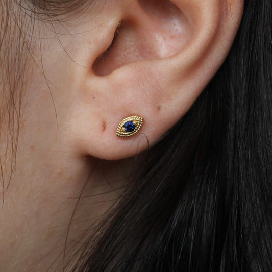 Sold, ask!Blue Sapphire Eye Motif Earrings