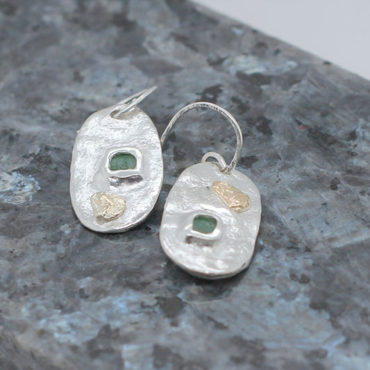 Sold, ask! Sold, ask!Tablet - Gold and Silver Emerald EarringsVendor:Melanie LeblancSold, ask!