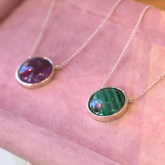 Sold, ask!Mini Full Moon Crushed Gemstone Pendant