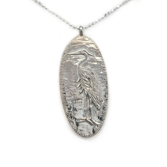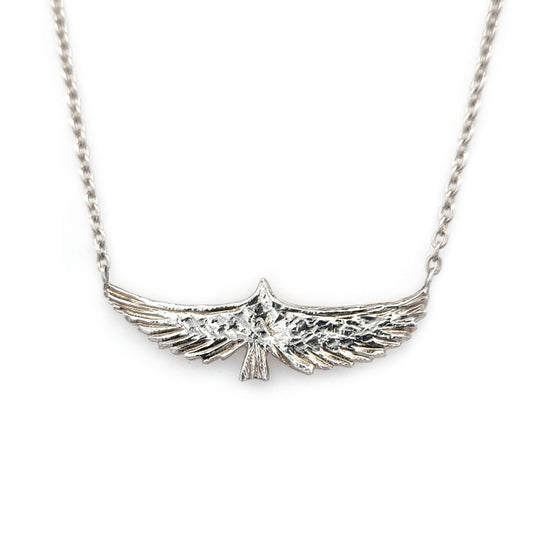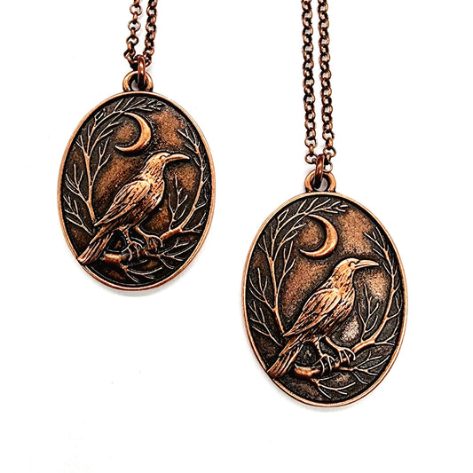 Raven and Crescent Moon Antique Silver Pendant Necklace
