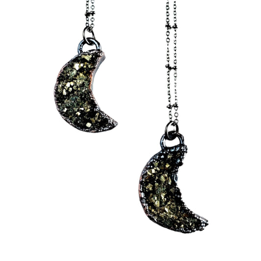 Sold, ask!Half Moon Crushed Pyrite Pendant