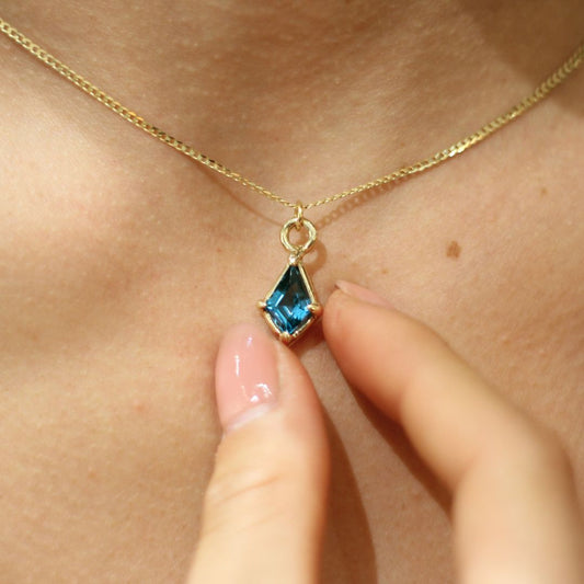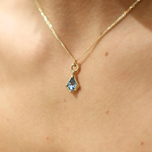 Sold, ask!Gold Cyan Sapphire Pendant Necklace