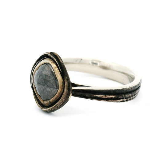18k Yellow Ring with 1ct Black Diamond Rose Cut and Diamond Accents