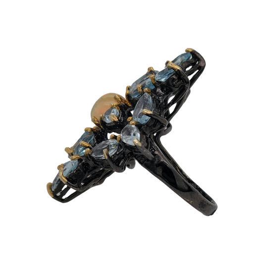 14k Yellow Organic Ring with Teal Blue Sapphire and Diamond Accents