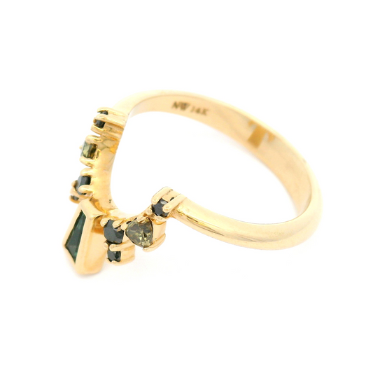 14k Yellow Contour Band with 0.12ct Green Sapphire Baguette and Accent Coloured Diamonds