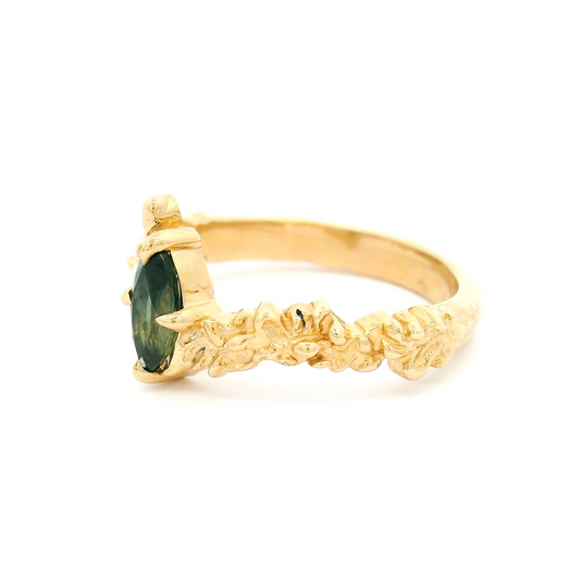 14k Yellow Organic Ring with 0.57ct Teal Green Sapphire and Diamond Accents