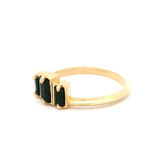 10k Yellow Three Stone Ring with 0.57cts of Emerald-Cut Black Spinels