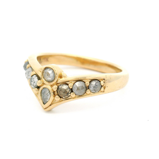 10k Yellow Contour Ring with 0.22cts Salt & Pepper Rose-Cut Diamonds