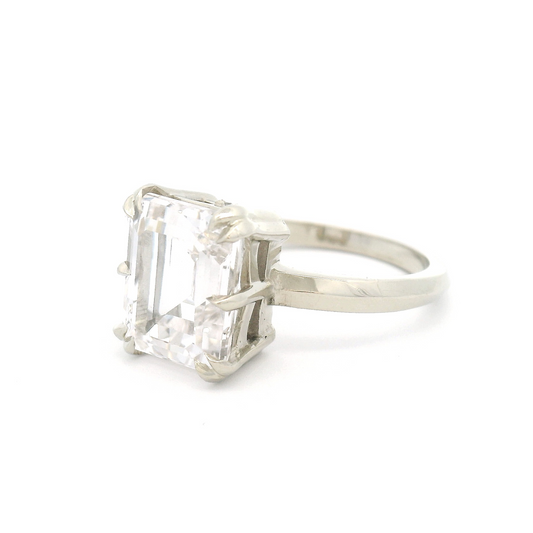 10k White Solitaire with 2.8ct Emerald-Cut White Sapphire and Accent Diamonds