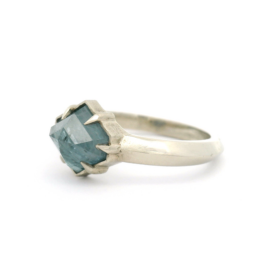 14k White Solitaire with 1.2ct Blue Rose-Cut Sapphire