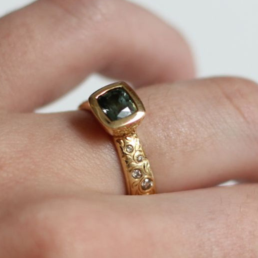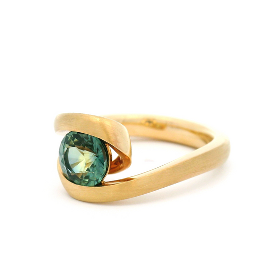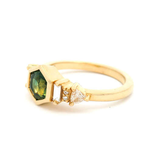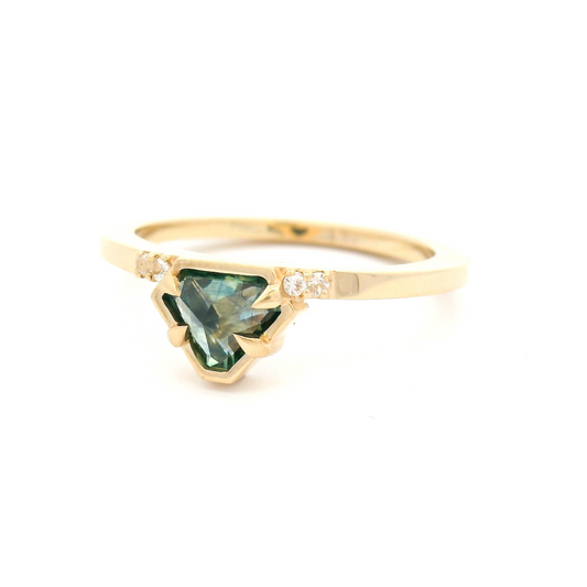 14k Yellow Organic Ring with 0.57ct Teal Green Sapphire and Diamond Accents