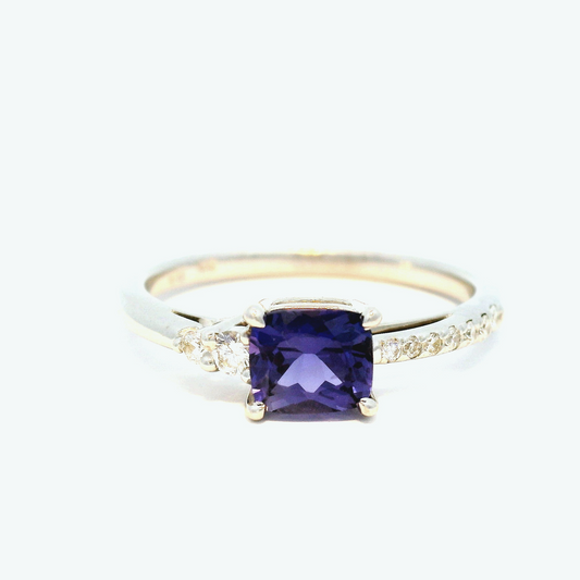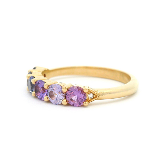 14k Yellow Ring with 1.32cts Purple Sapphires and Accent Diamonds