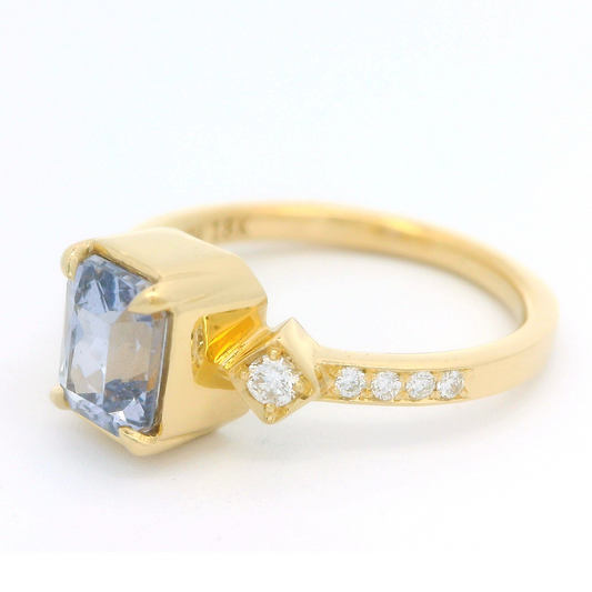 18k Yellow Cornflower Sapphire Engagement Ring with Accent Diamonds