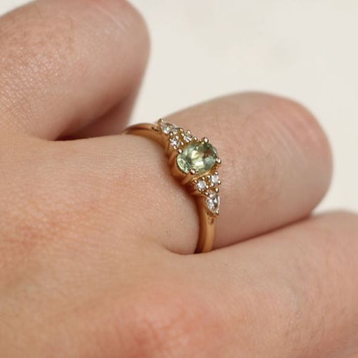 Green Sapphire Solitaire Leaf-y Engagement Ring