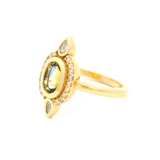 Fleur - 14k Yellow Ring with 0.93ct Parti Sapphire and Accent Diamonds