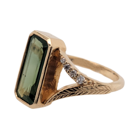 14k Yellow Organic Ring with 1.1ct Green Sapphire and Diamond Accents