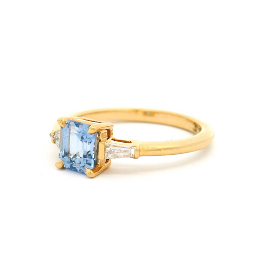18k Yellow Engagement Ring with 1.30ct Teal Square Emerald-Cut Sapphire and Accent Diamonds